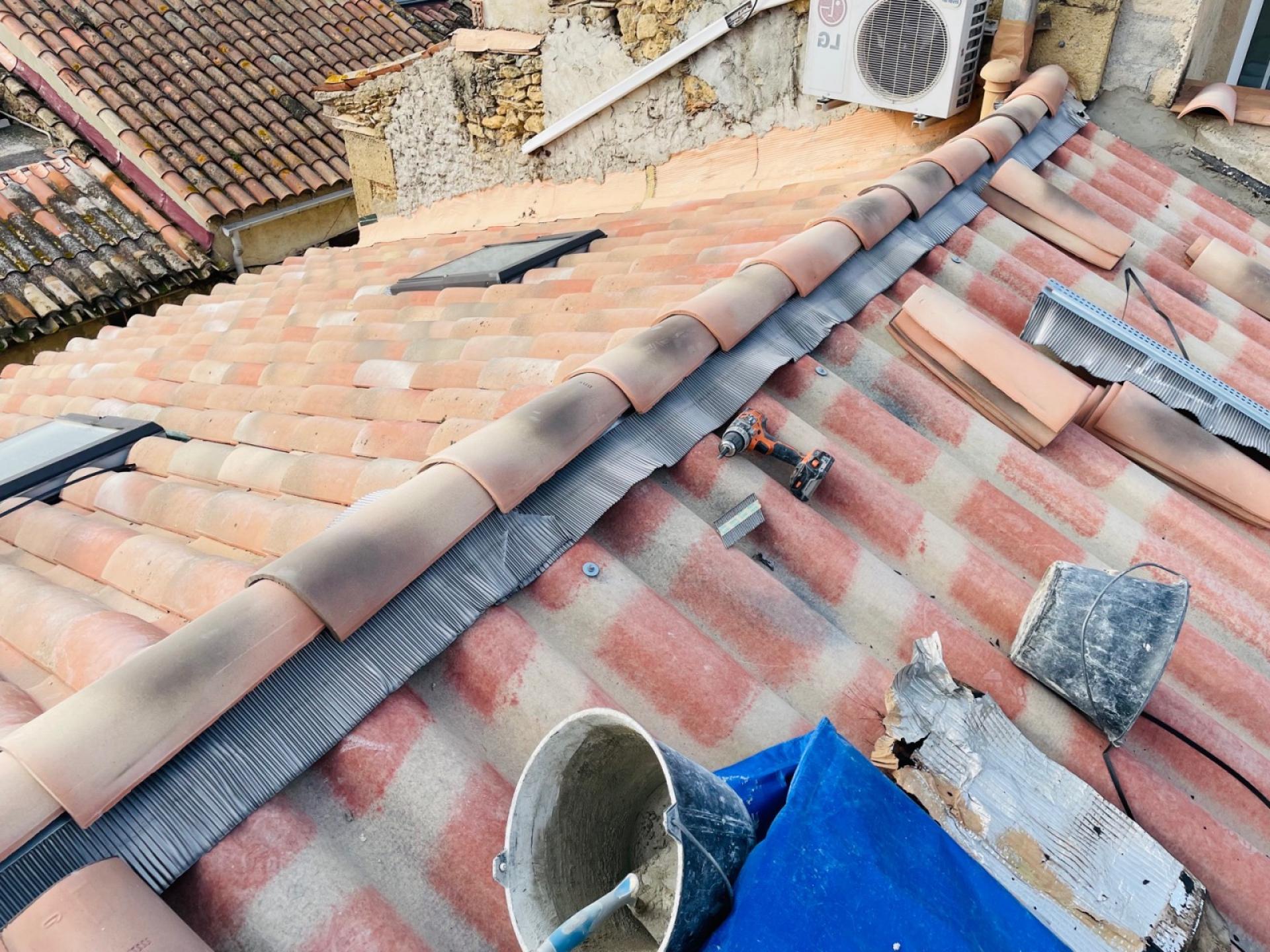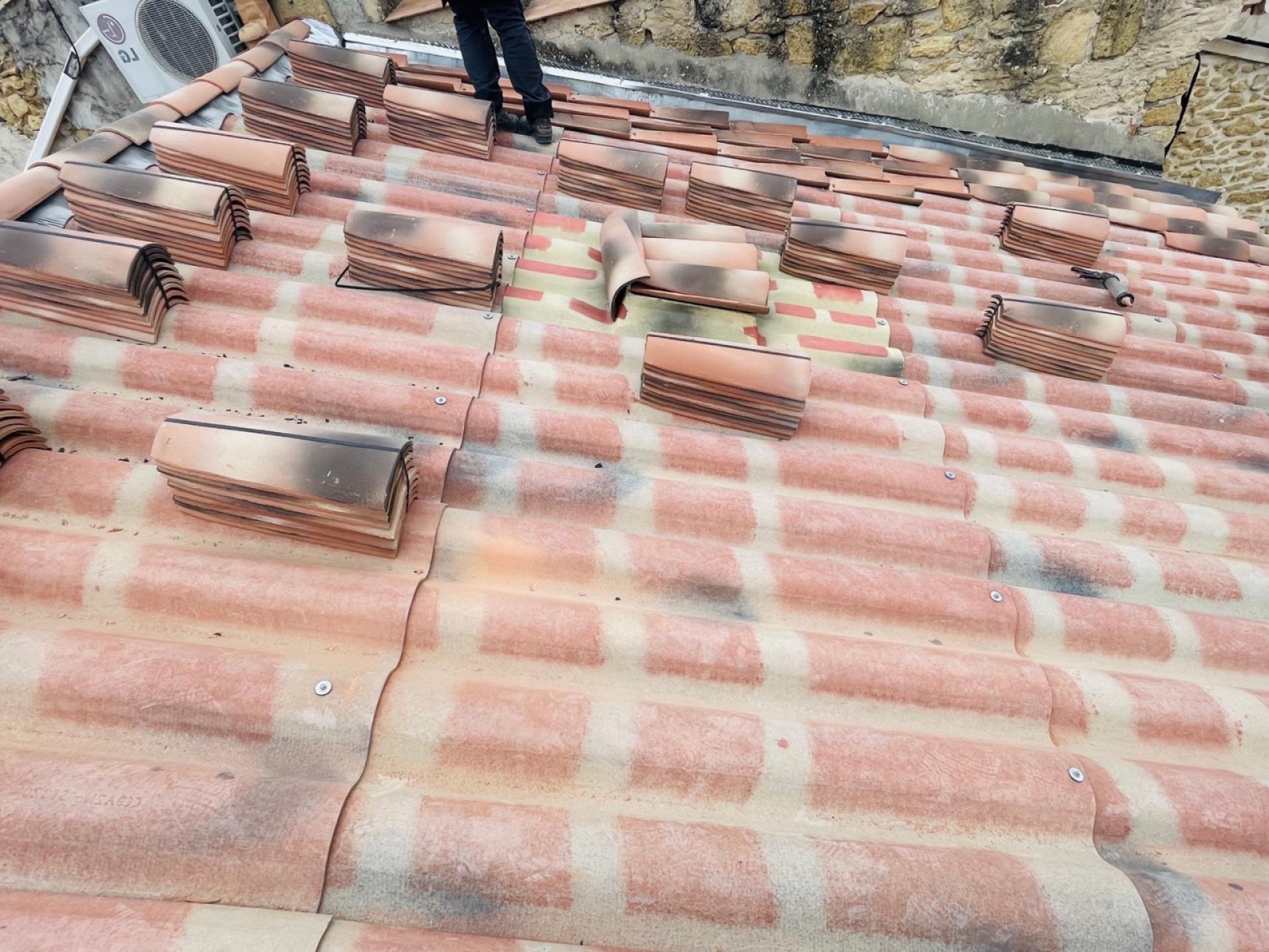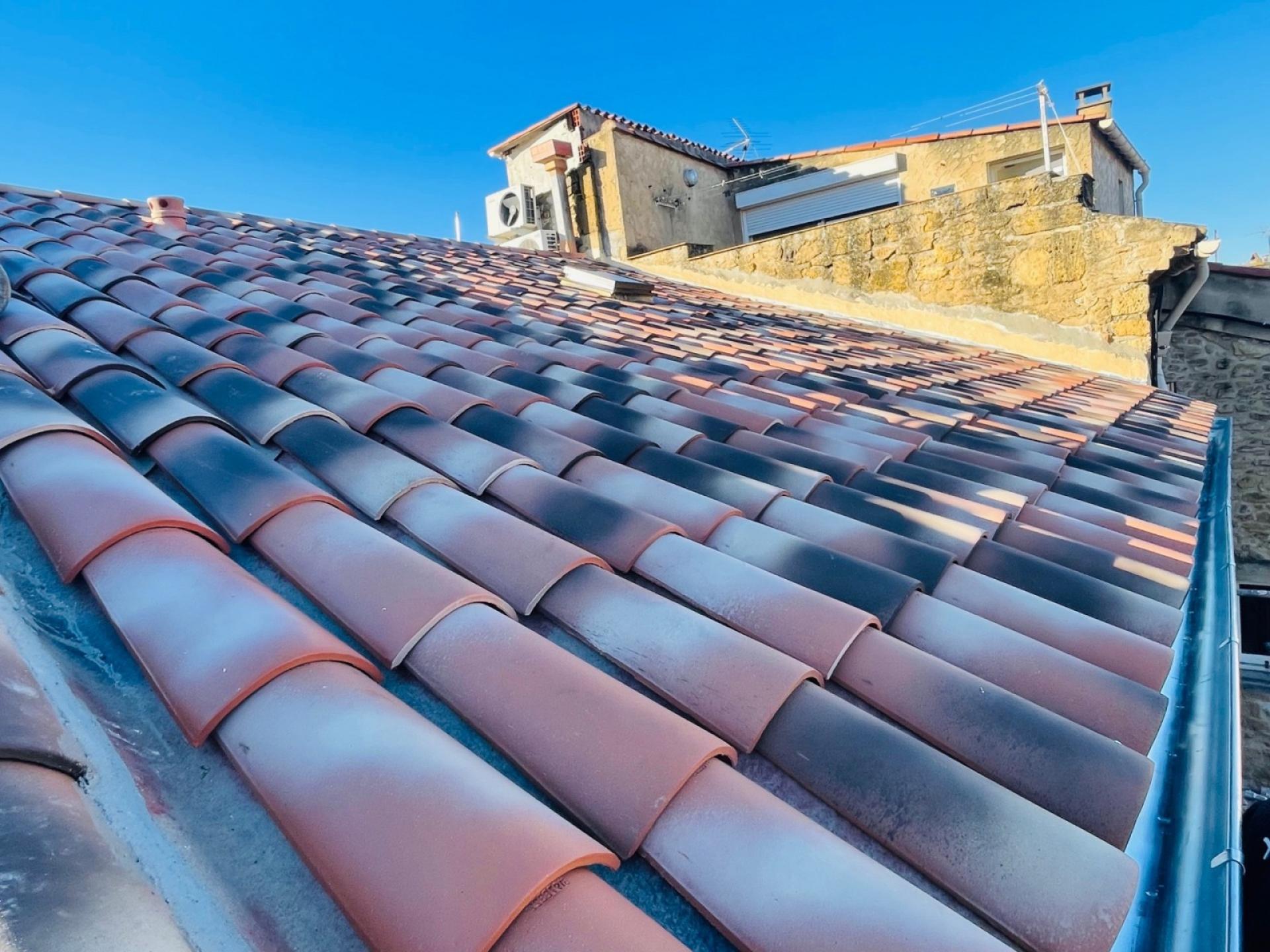 Cette prestation se porte ici sur le changement de cette toiture de type P.S.T Canal Silvacane, en lieu et place des tuiles Canal vieillissantes.