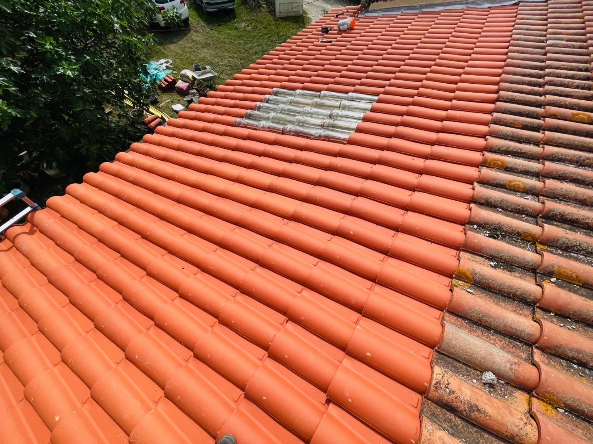 Cette prestation se porte sur le changement des tuiles de cette toiture de type mécaniques Romane Rouge, en lieu et place des tuiles Romane vieillissantes.