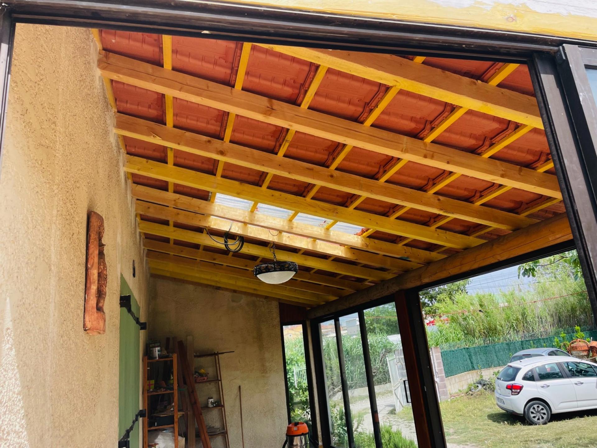 - Pose de poutres et chevrons à neufs.