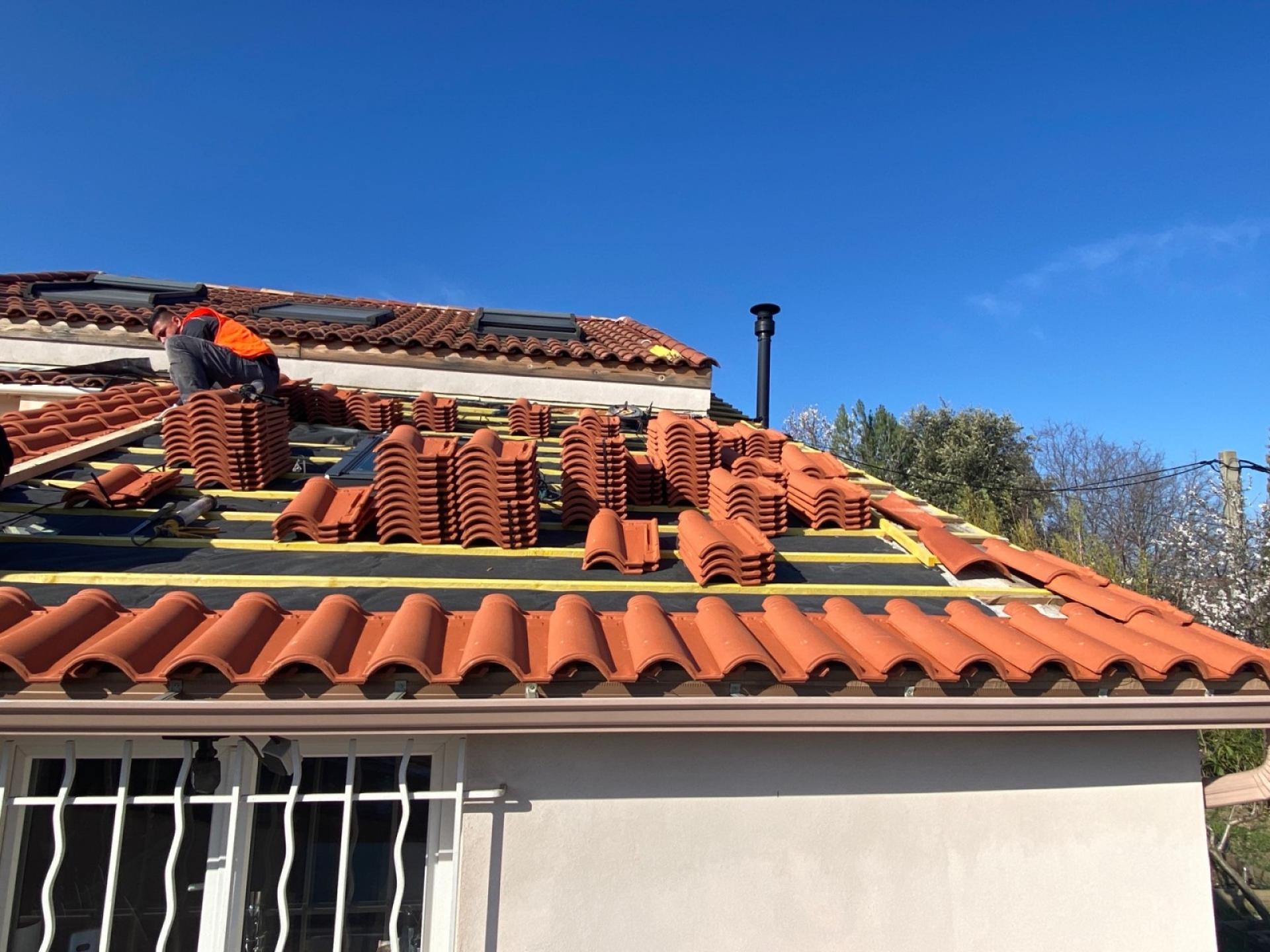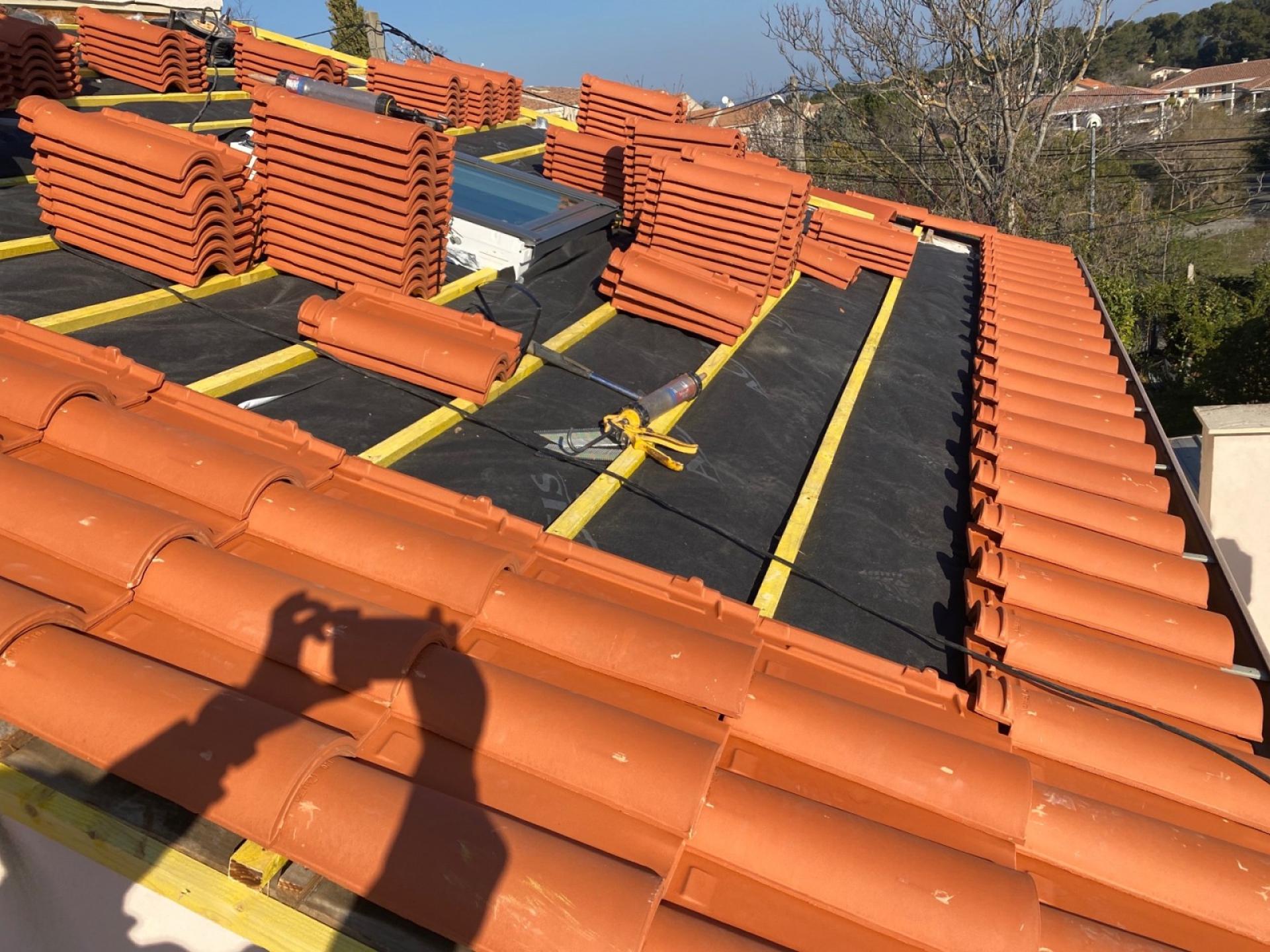 - Nous posons les tuiles romanes rouge.