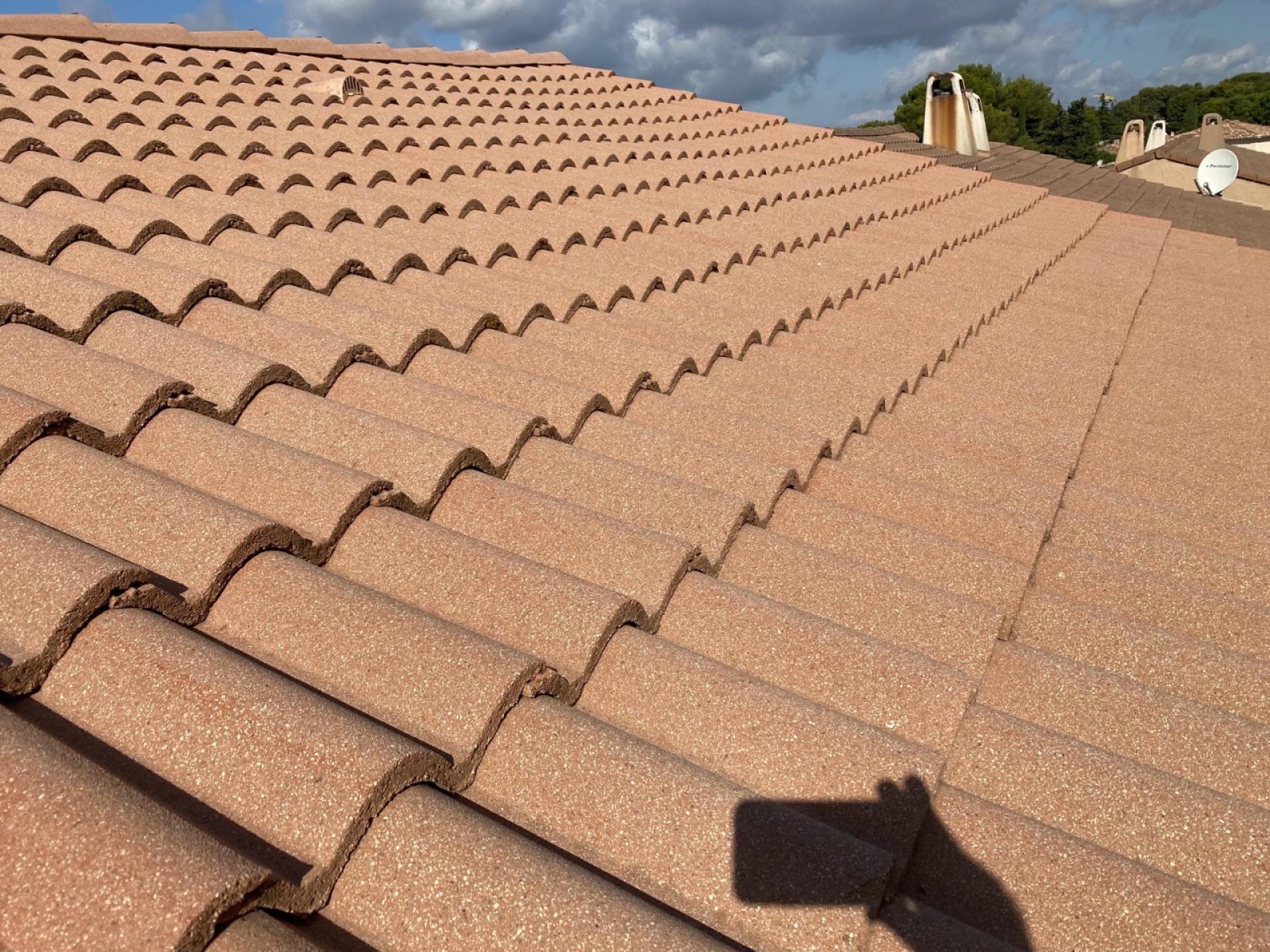 Vous découvrez ici un chantier de nettoyage et traitement hydrofuge d’une toiture près de Martigues réalisé par Solutoiture votre partenaire en rénovation et entretien de toiture.