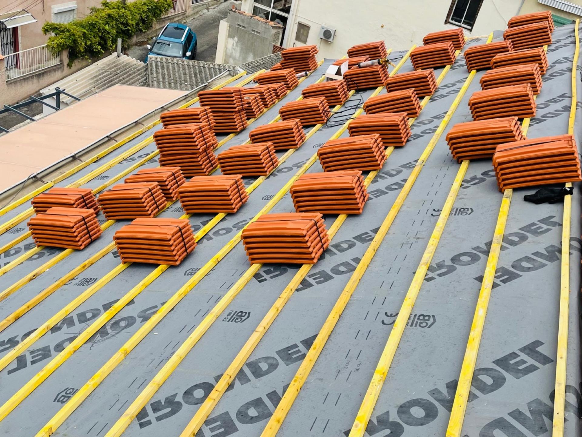 - Mise en place des tuiles de type mécanique plates de Marseille rouge.