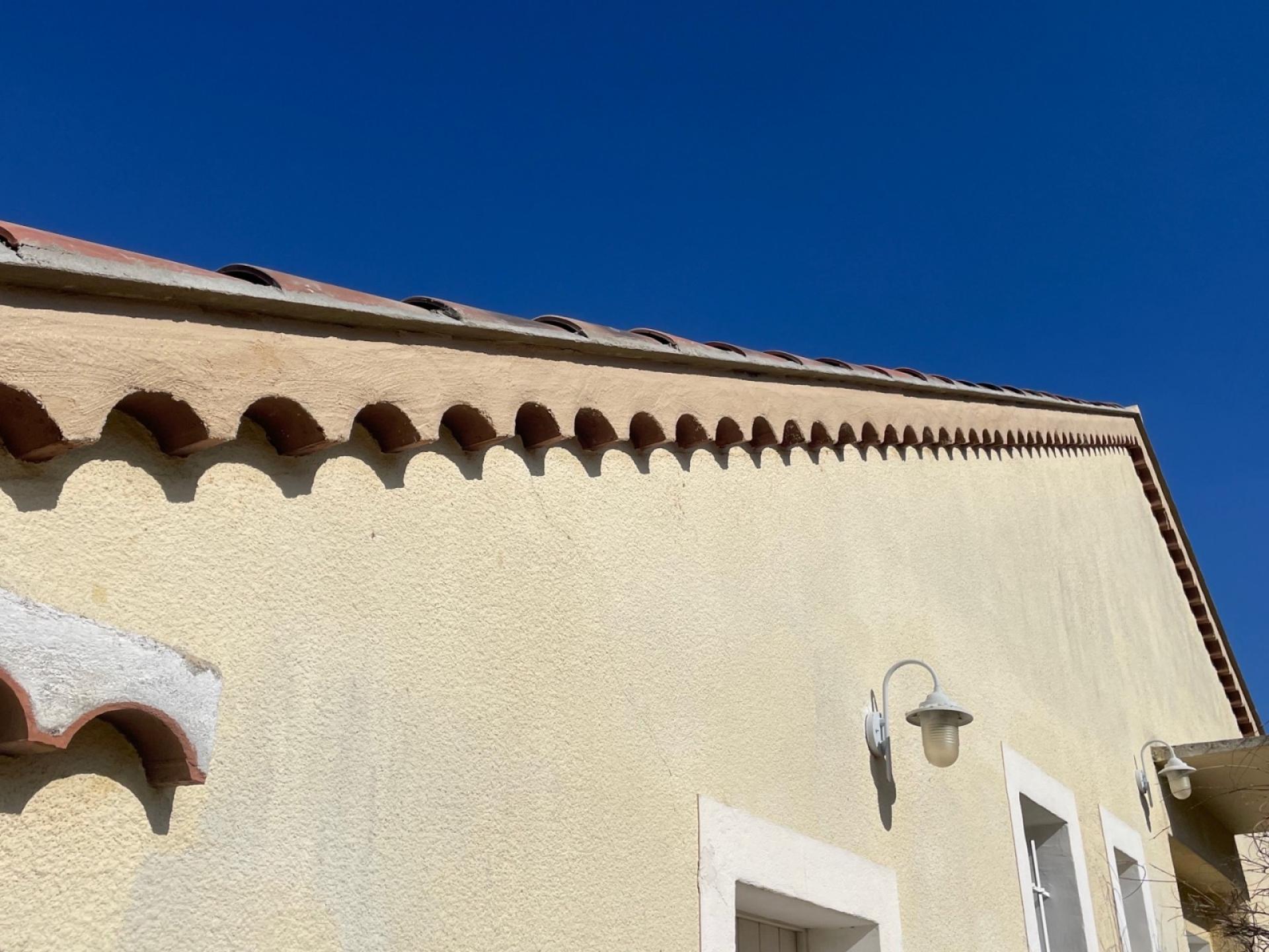 - Pose des enduits de finition sur les rives et génoise ton pierre.