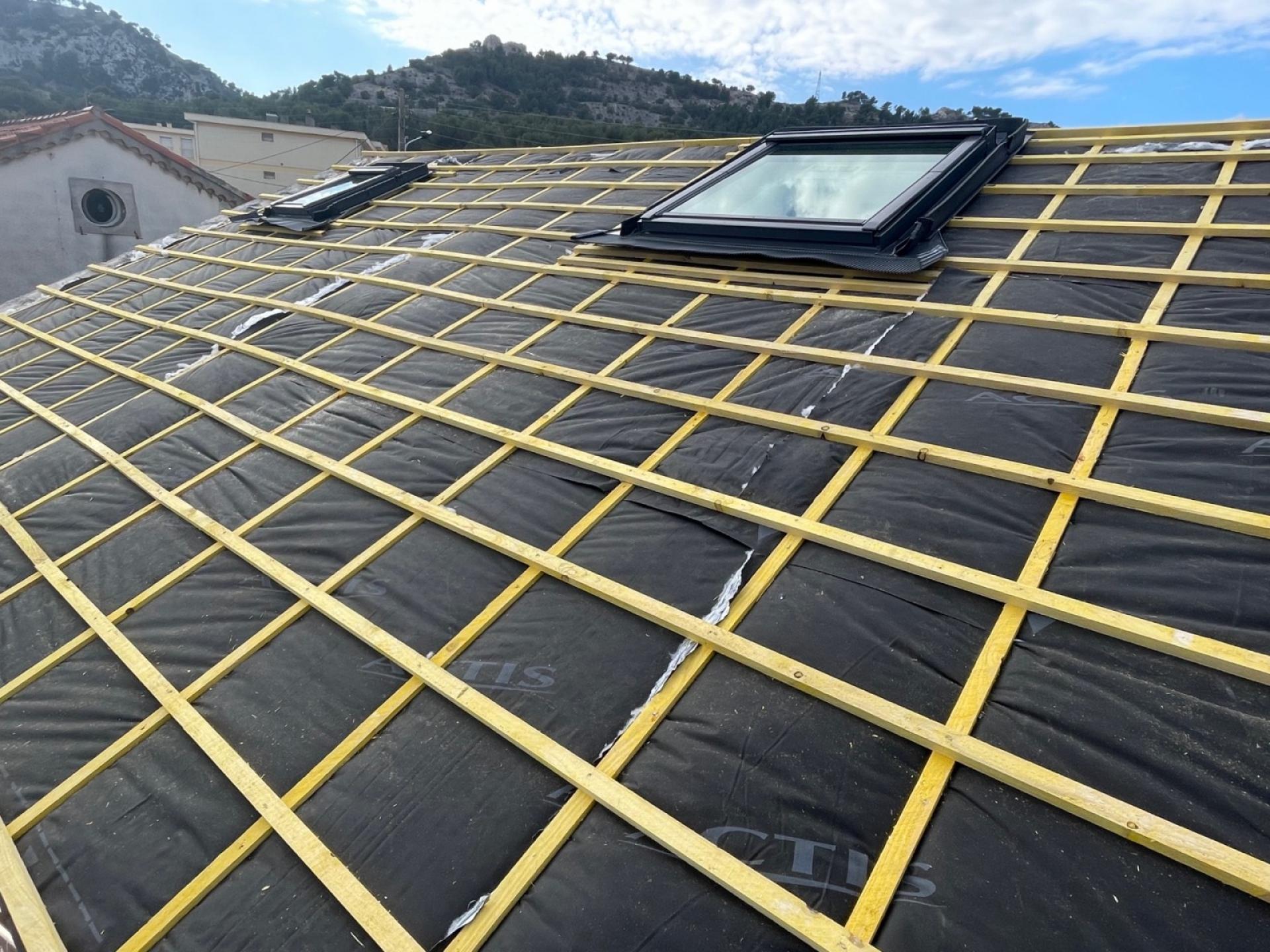 réfection de toiture mécanique Romane avec isolation sous toiture sur Châteauneuf-les-Martigues.