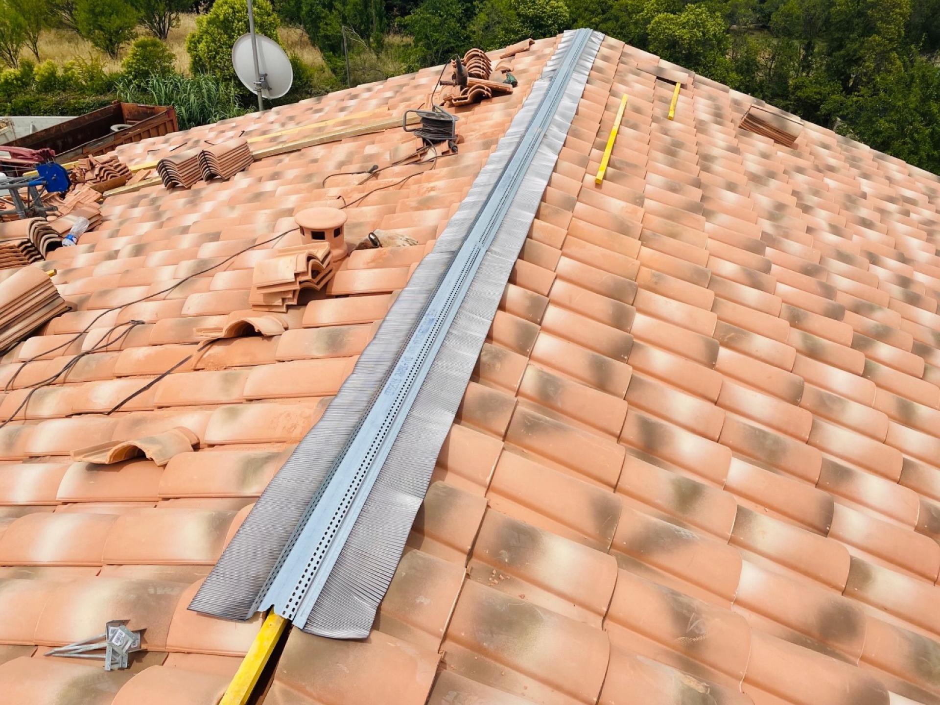 - Pose de P.S.T tuiles canal Silvacane sur le haut vent.