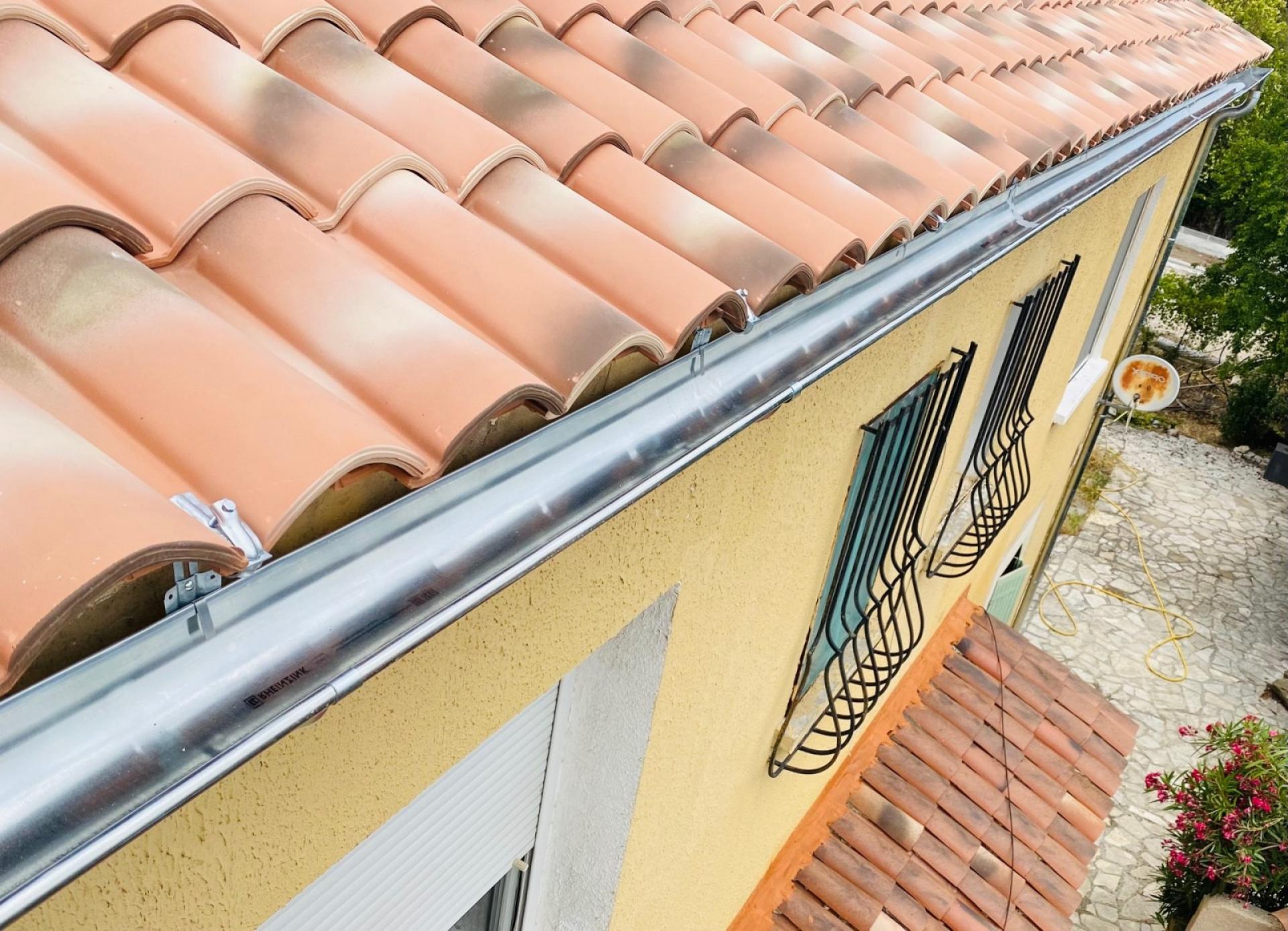 - Fin du chantier avec le pose des gouttières en zinc ainsi que le nettoyage de la toiture.