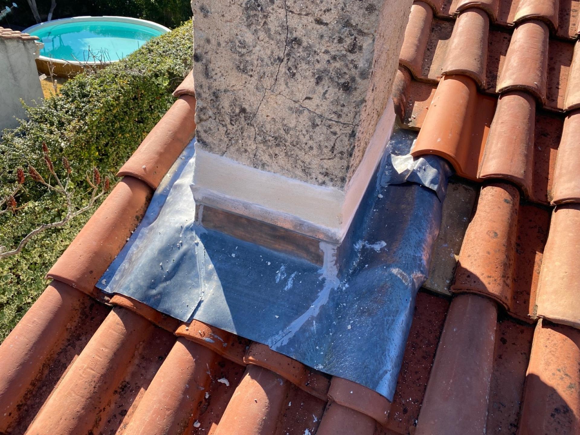 - Puis la pose d’un Solin et aussi le tour de cheminée en plomb.