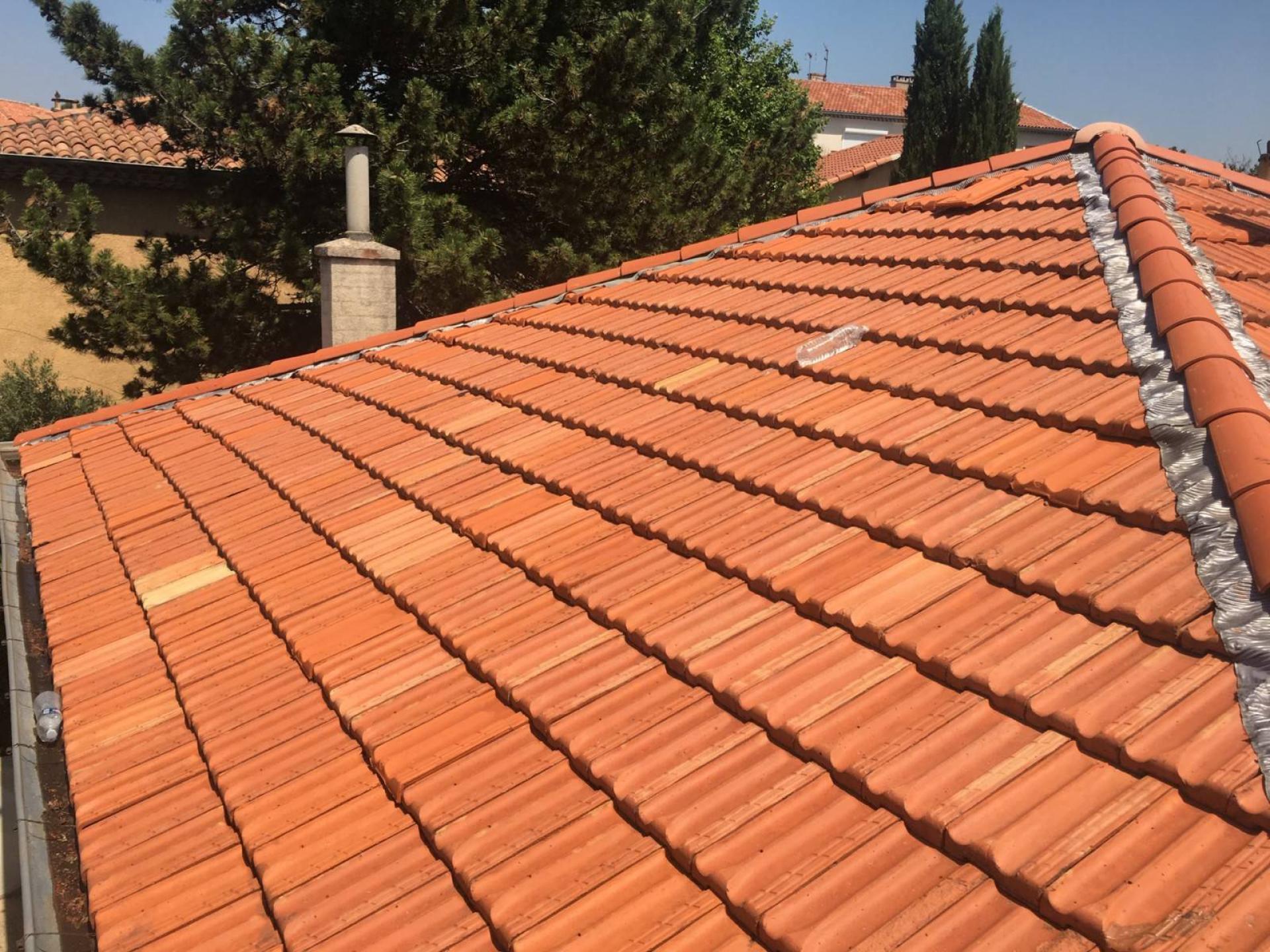 toiture tuiles plate de Marseille en quatre pentes avec