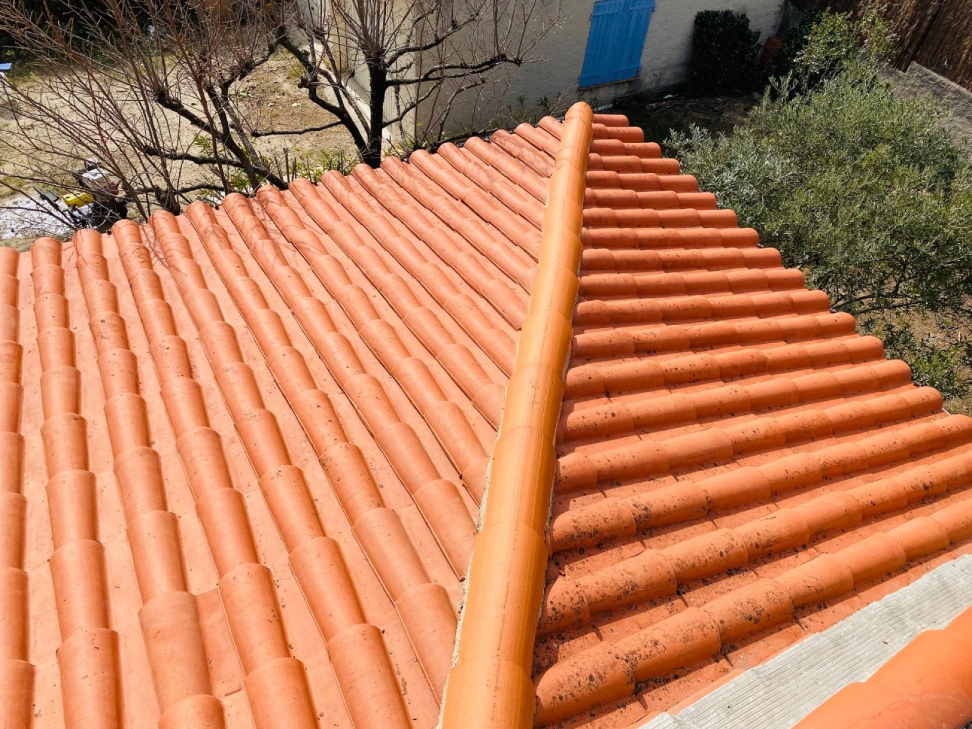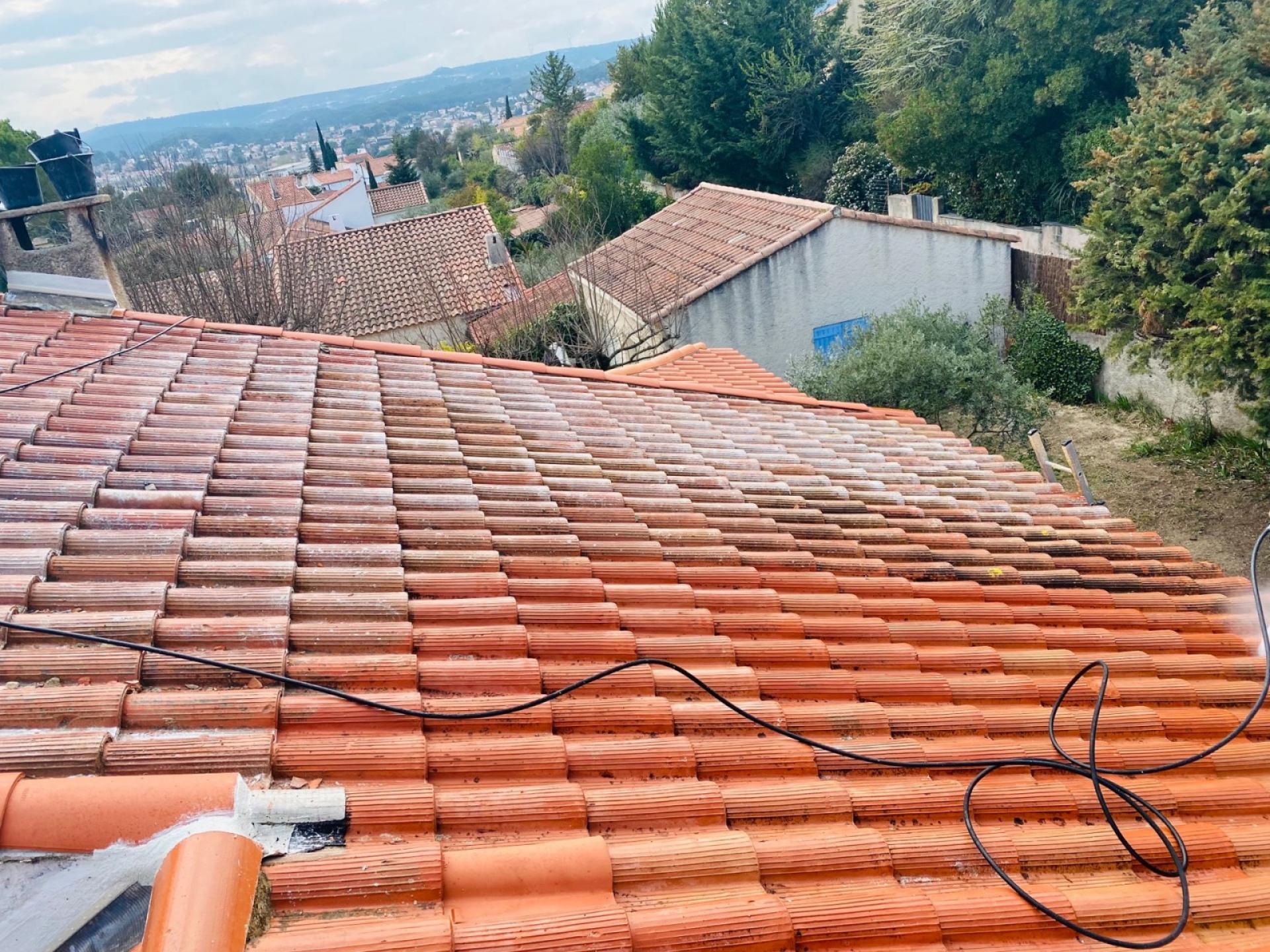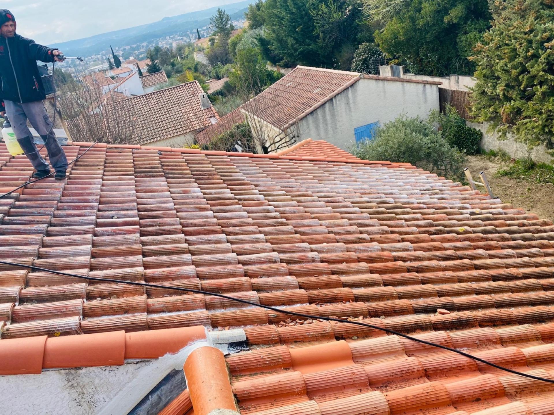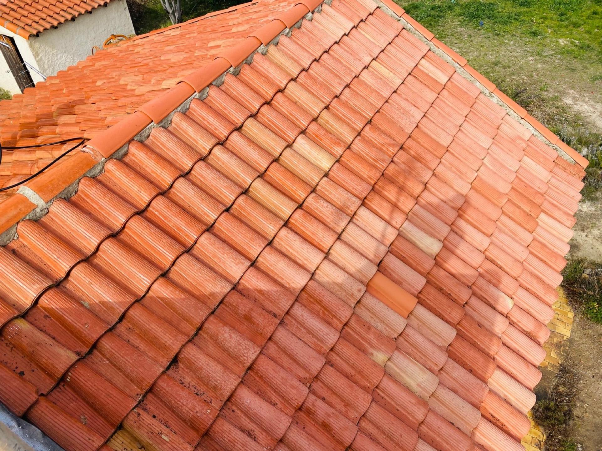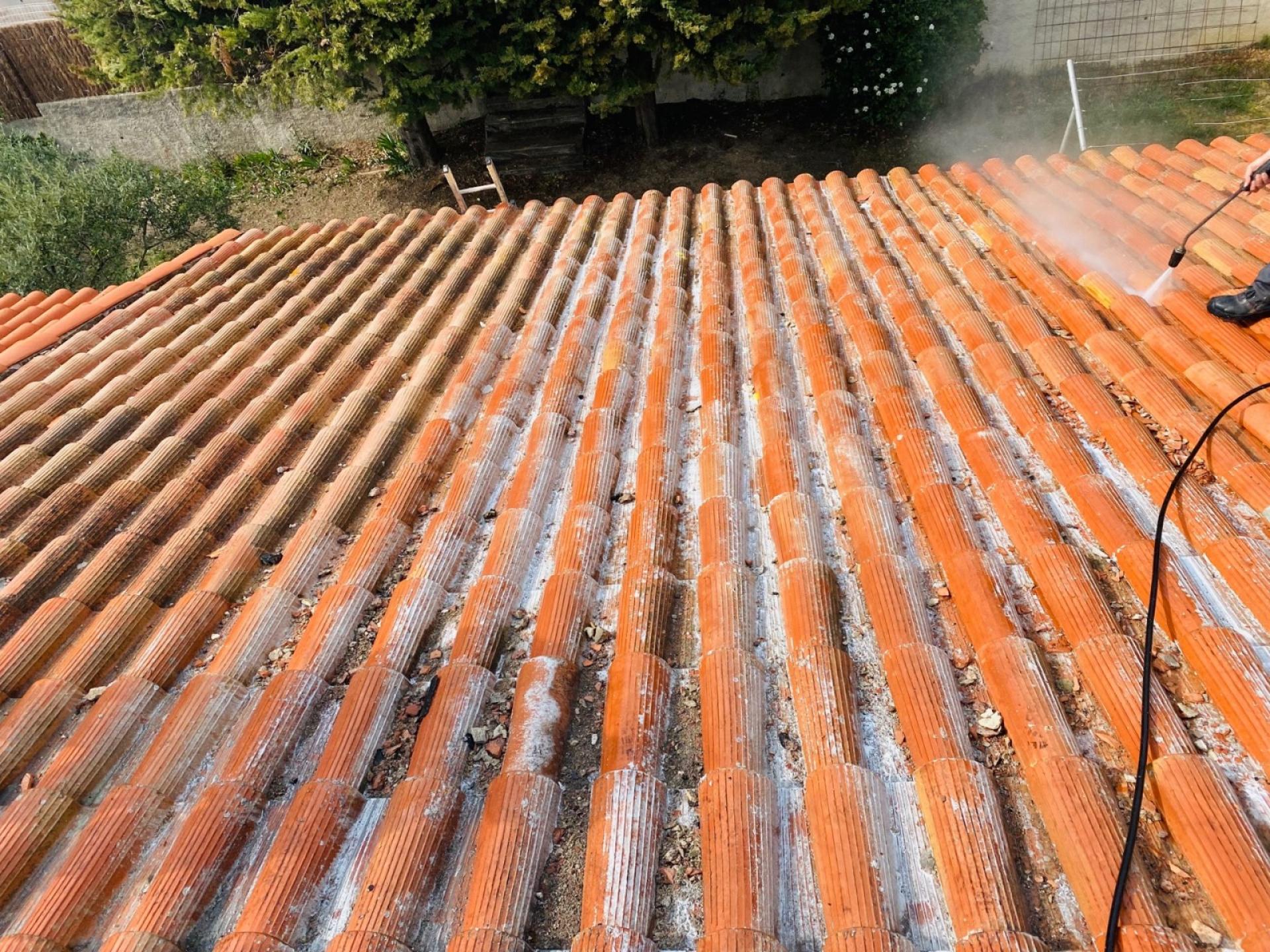 le nettoyage des tuiles avec application de l’hydrofuge.
