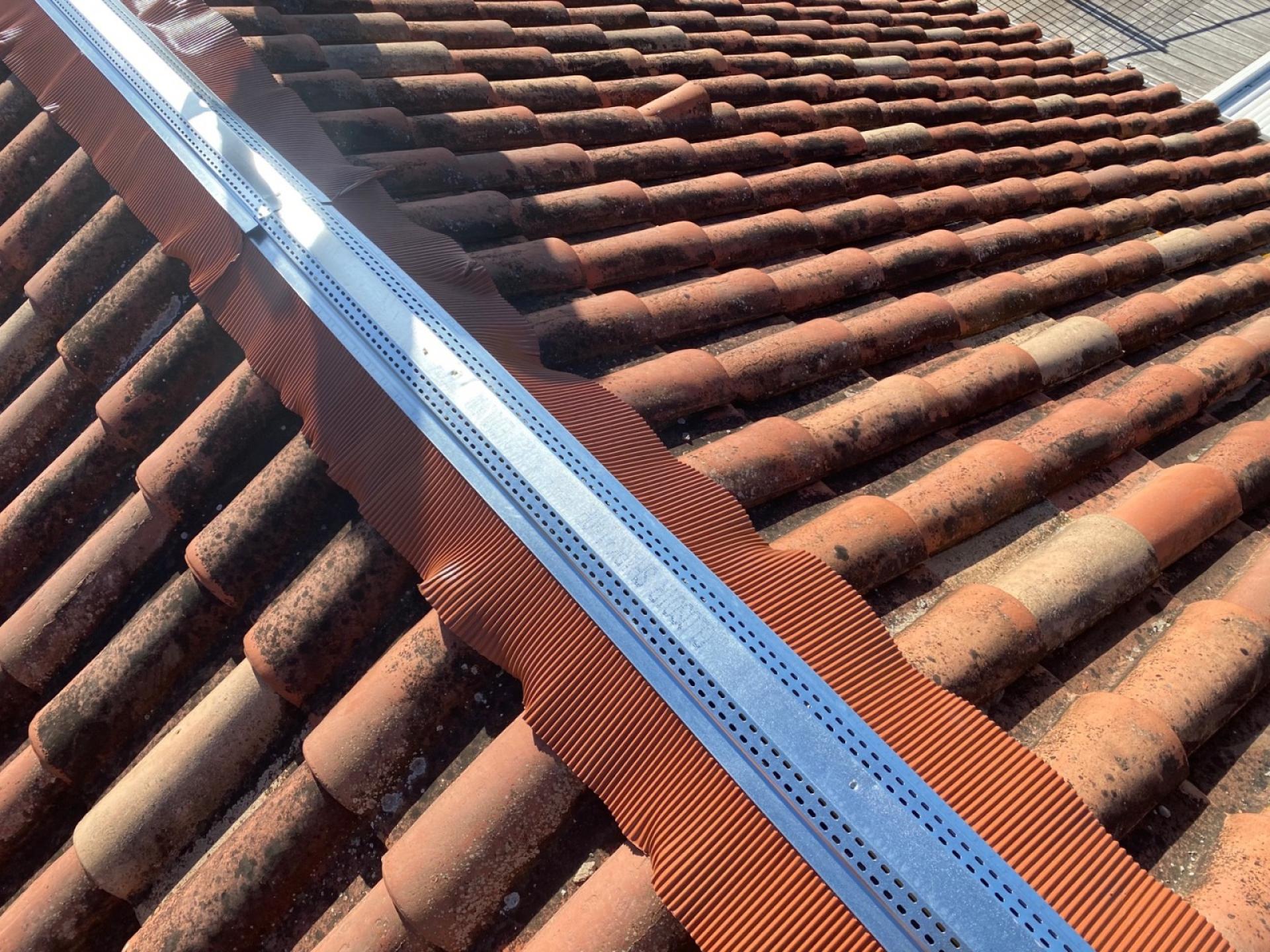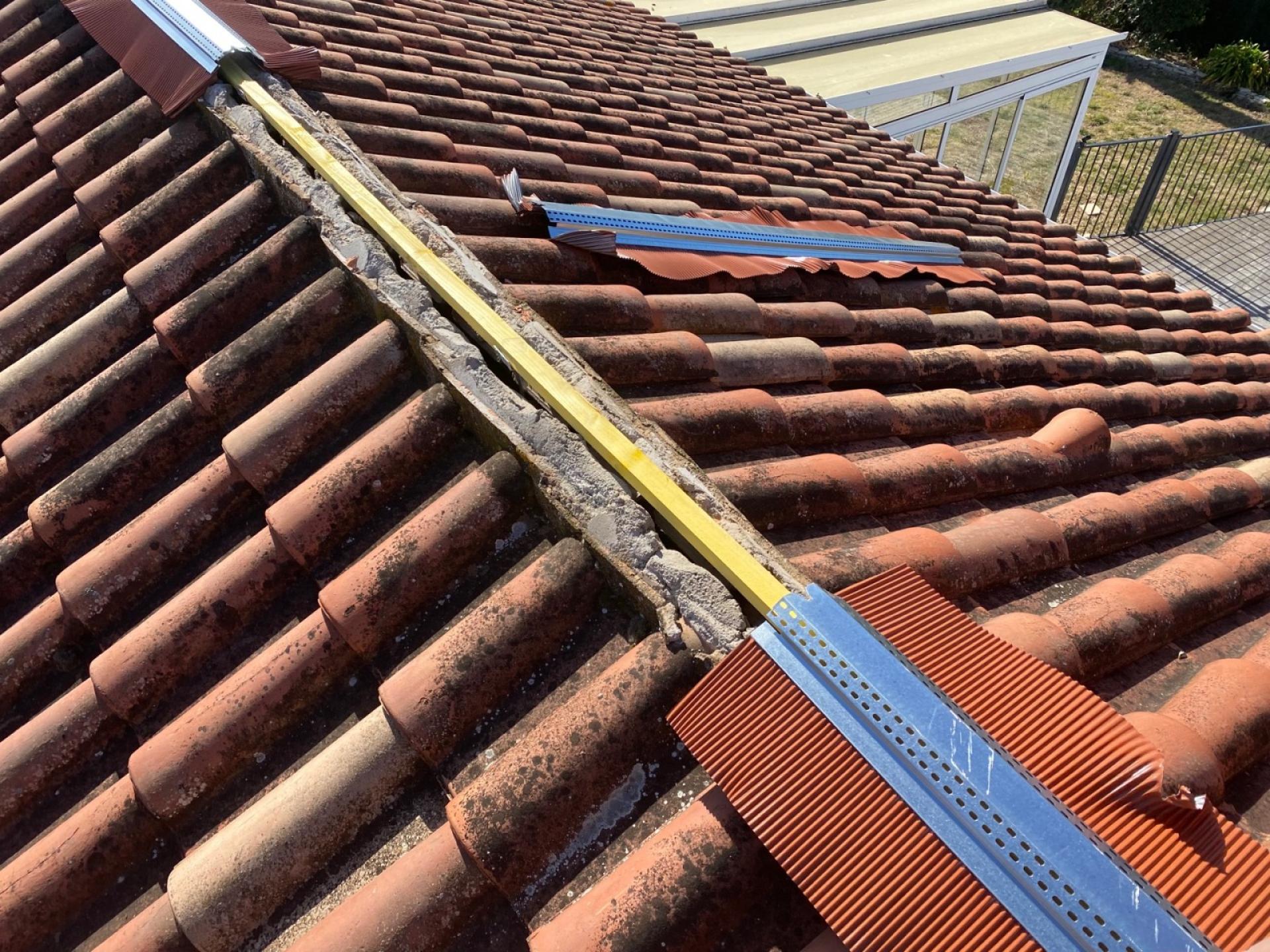 - Nous commençons ce chantier de rénovation de toiture par le changement du Faîtage type closoir Plomb rouge.