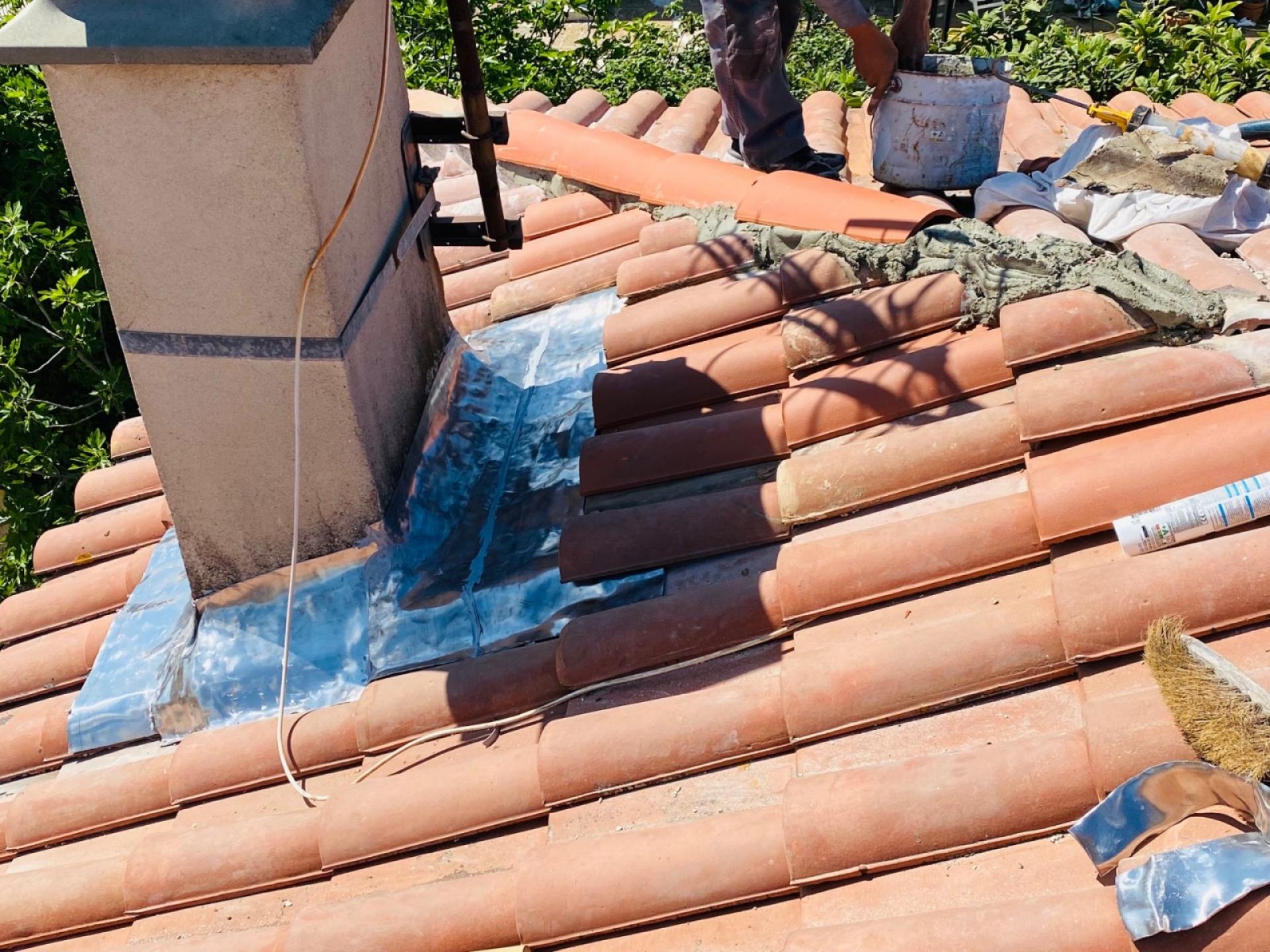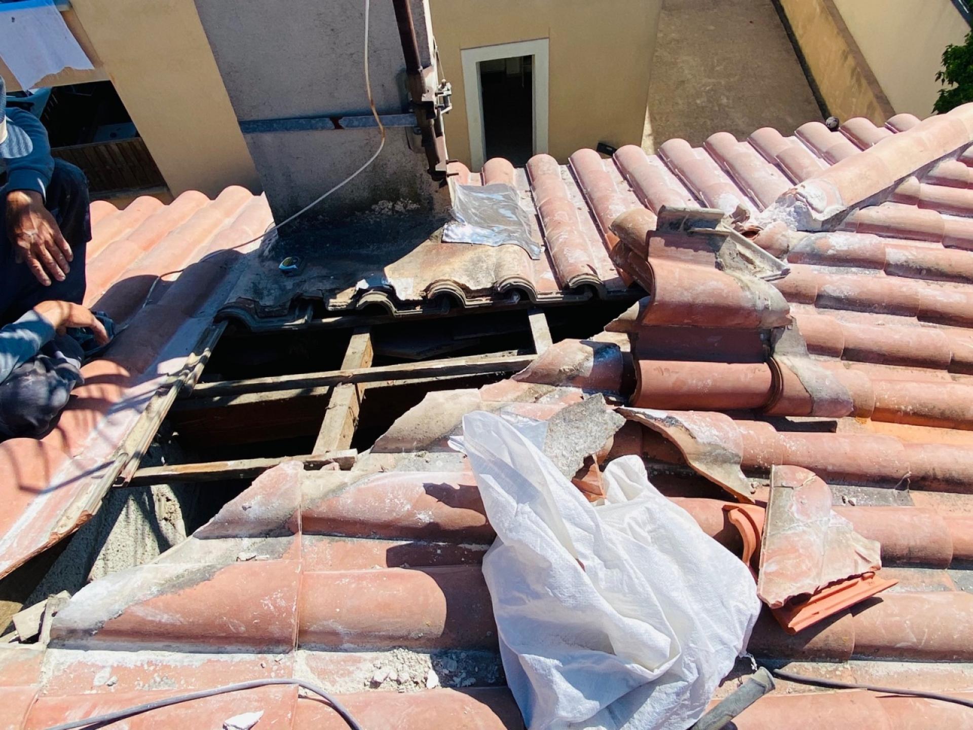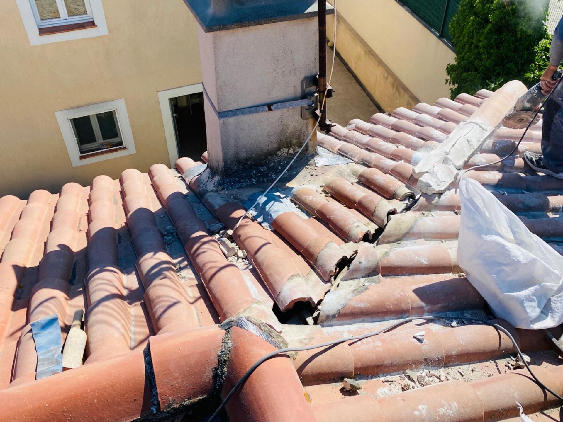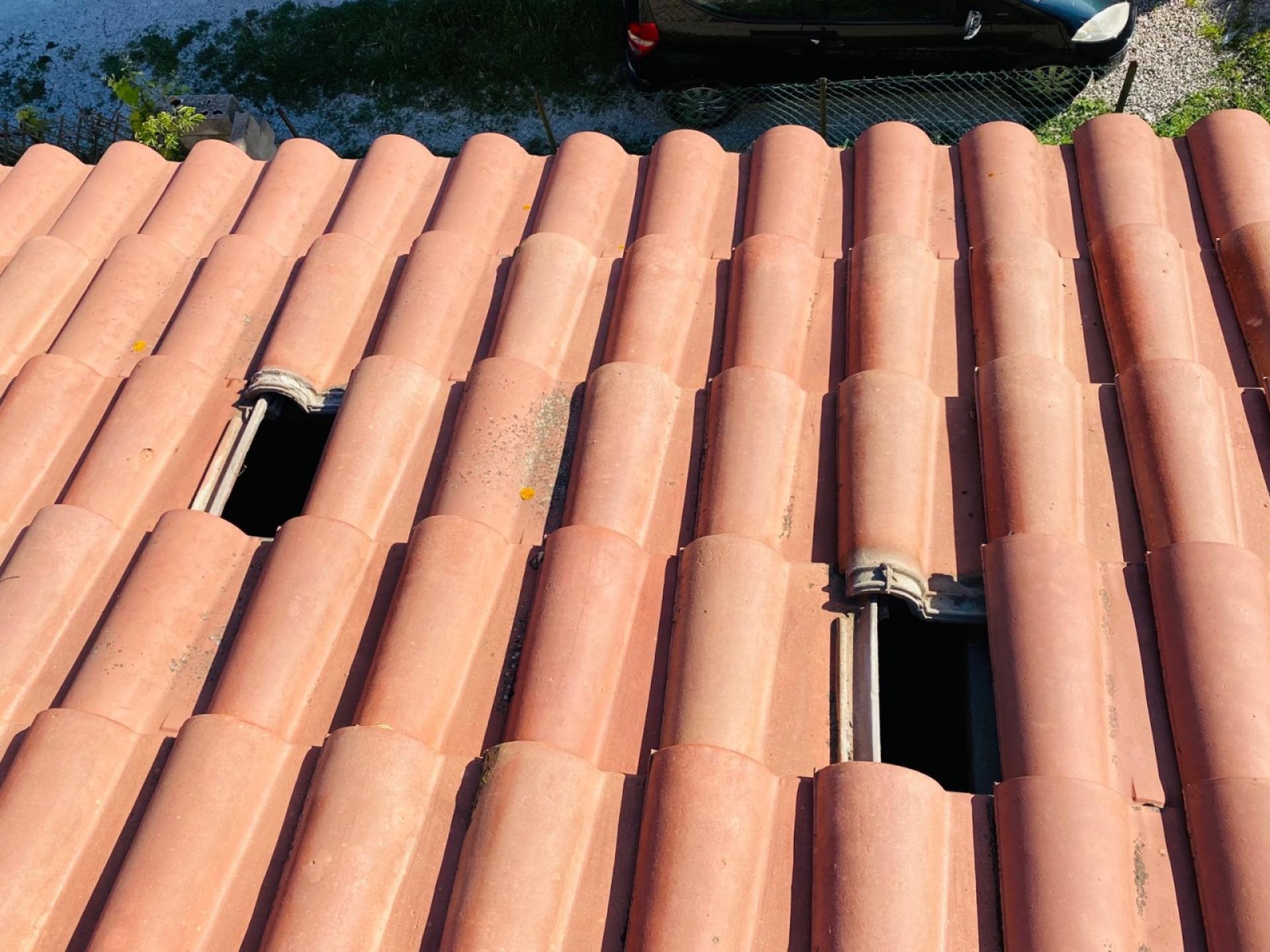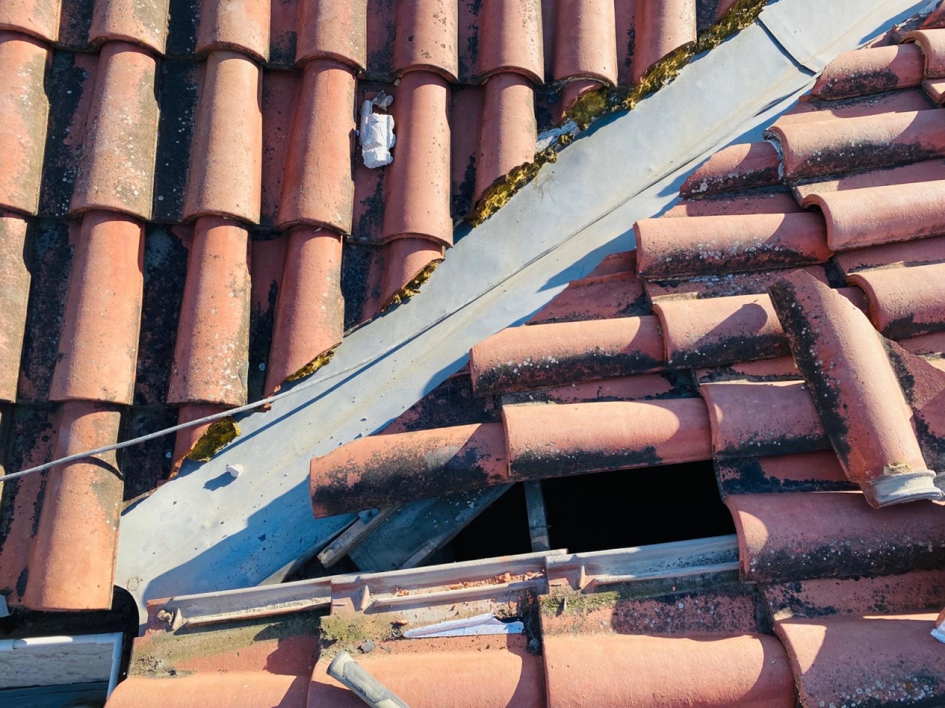 révision de la toiture avec changement des tuiles cassées.