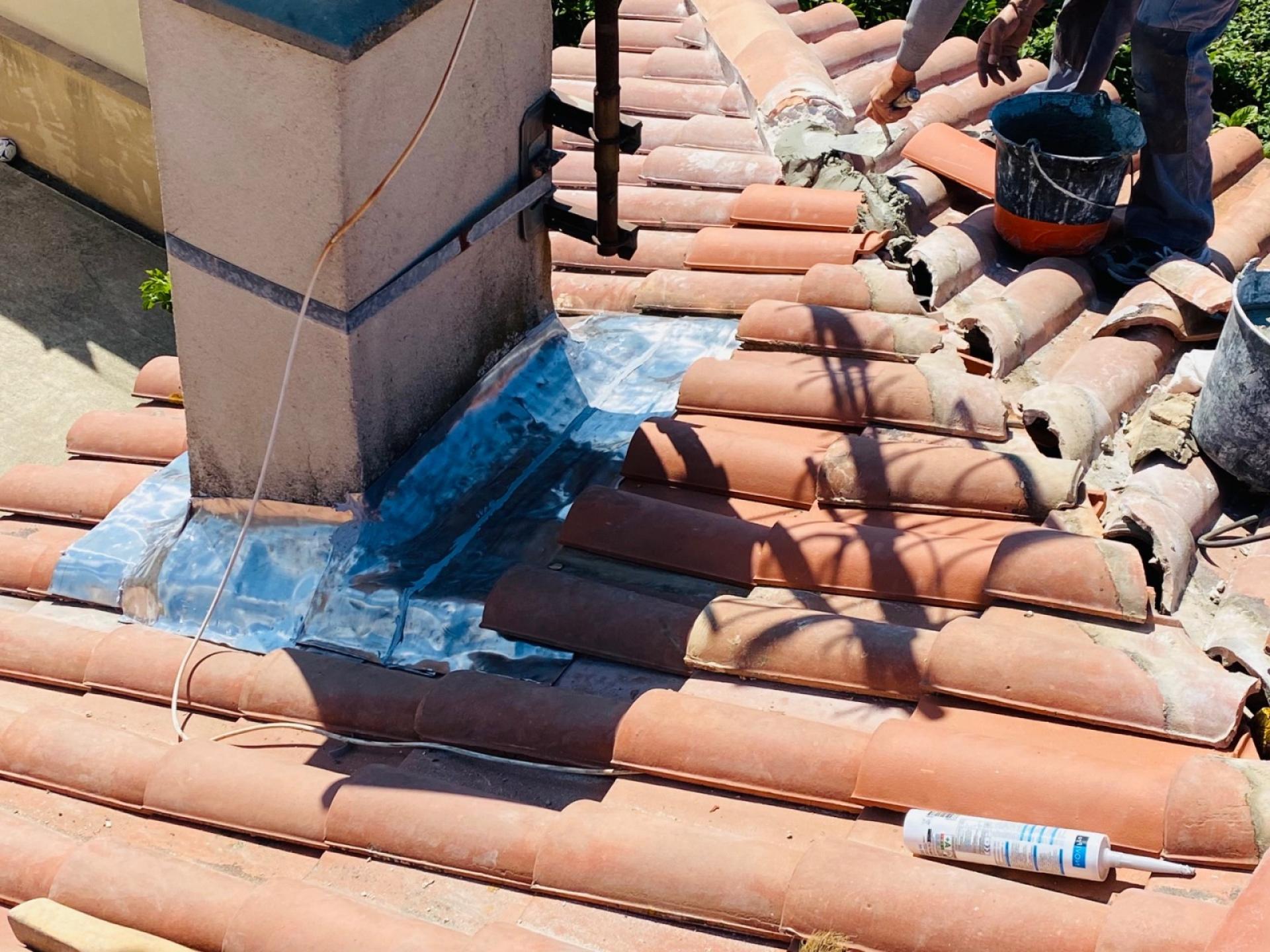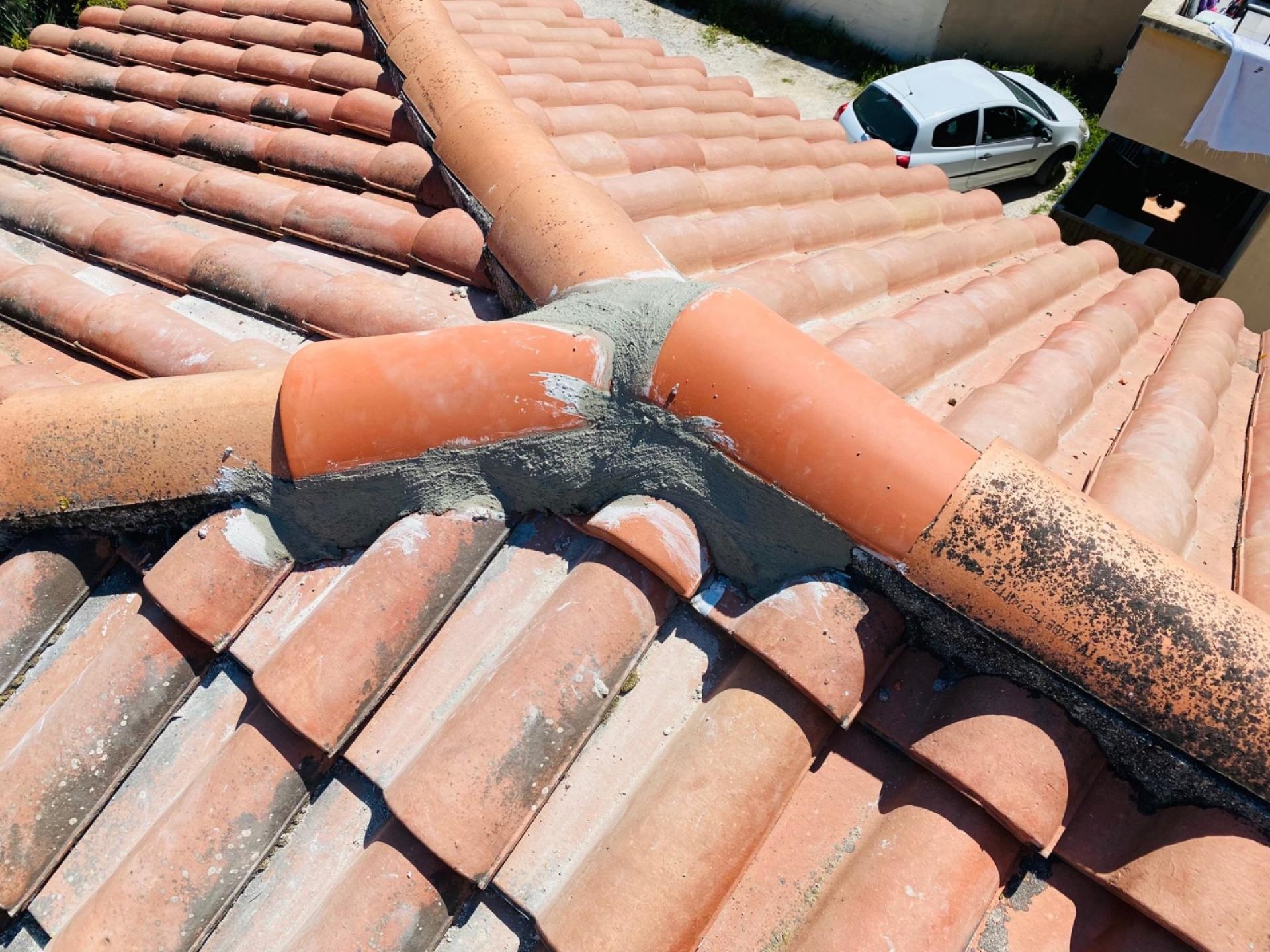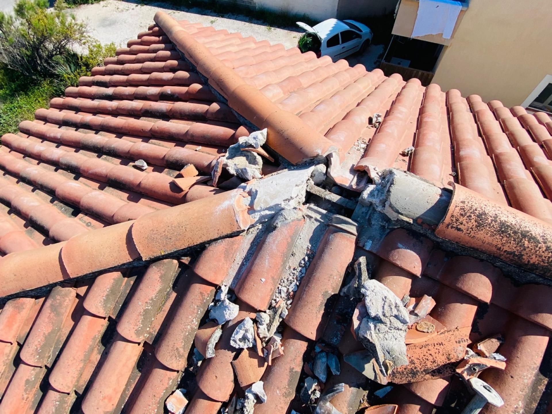- Fin du chantier avec le changement des tuiles cassées et leurs fixations par collage.