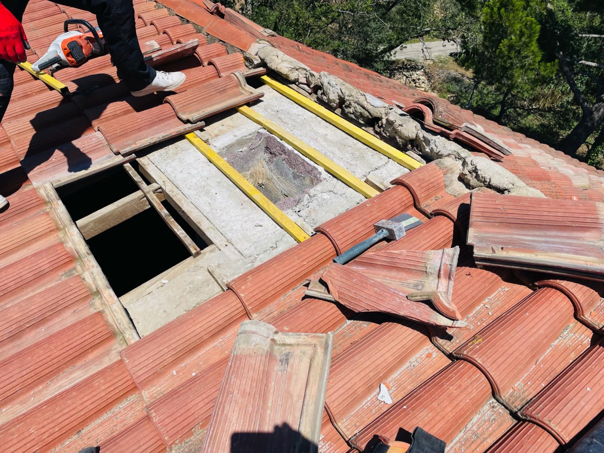 Sur place nous avons constaté que des tuiles étaient cassés avec des étanchéités de cheminée et Faîtage défaillantes.